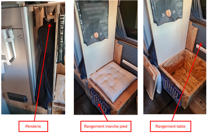 3-Rangement soute : Table / Chaises / Tiroirs / Isolation externe pare-brise …